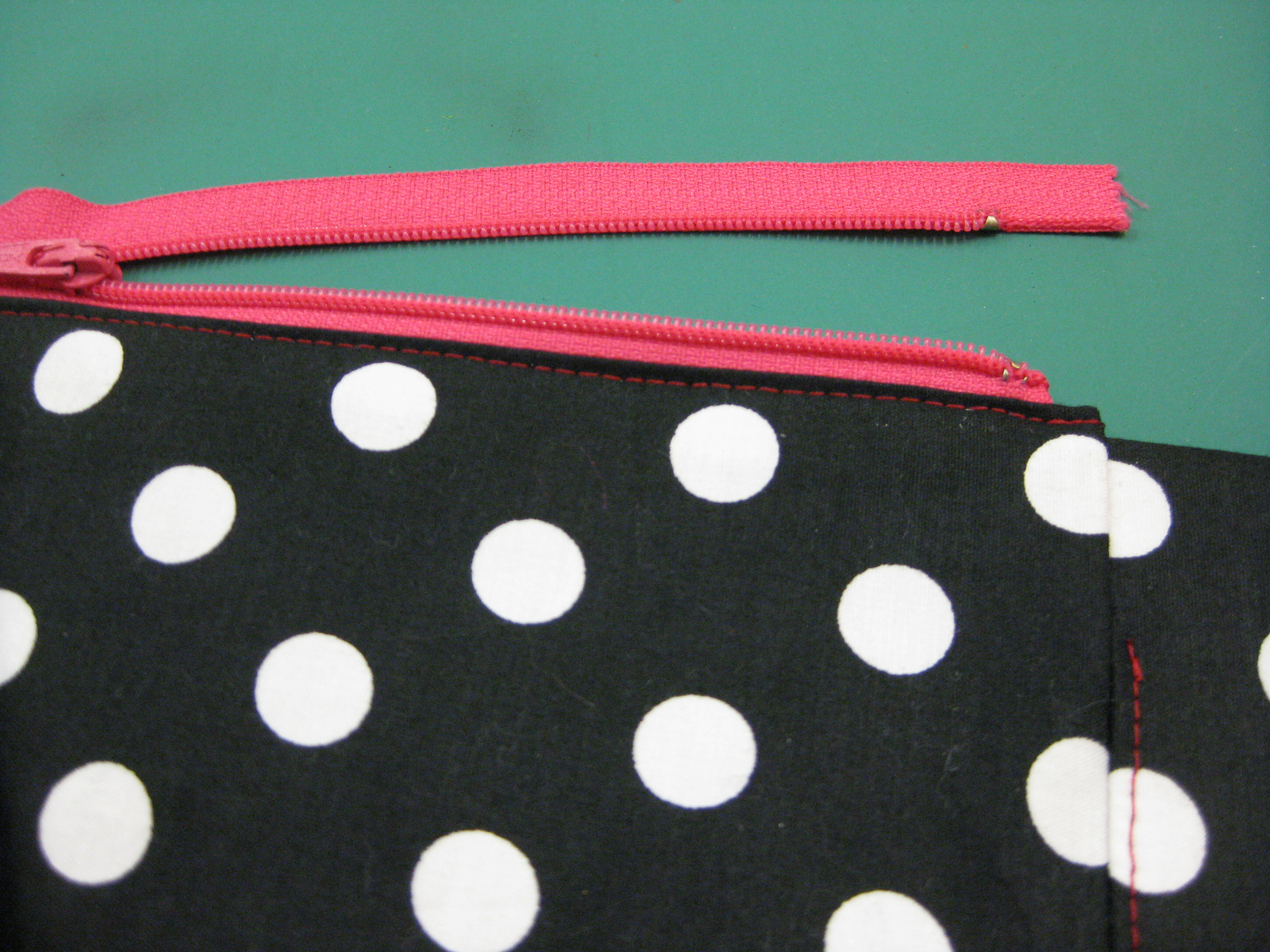 Stitching should be close to the zipper teeth. Move needle a little further from the teeth if fabric is thicker.