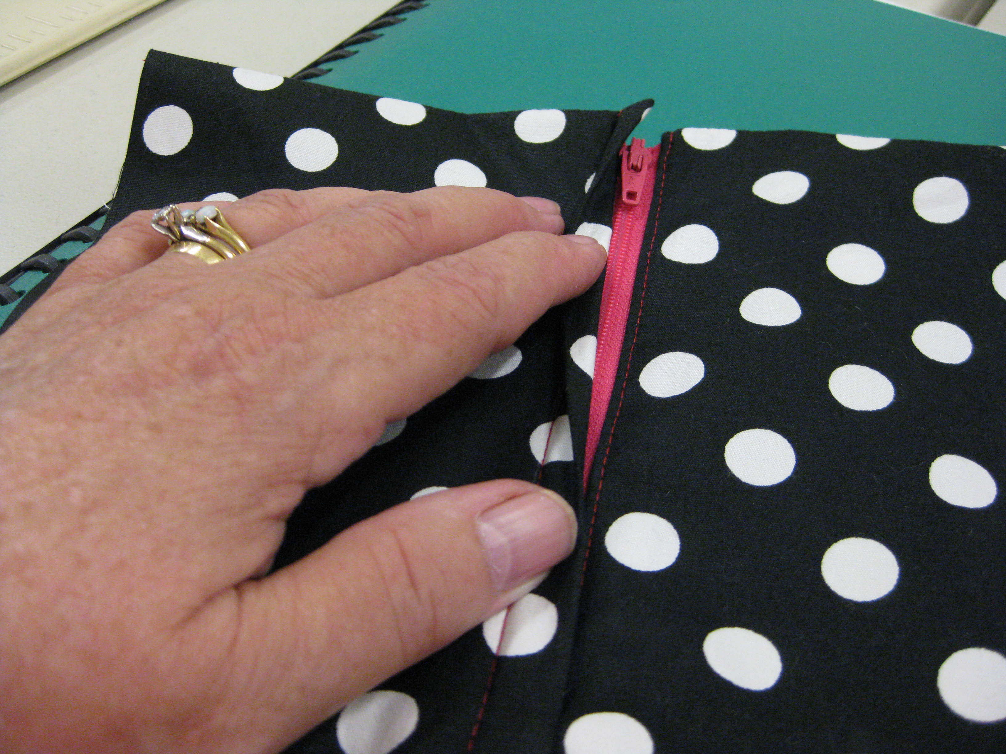 Thread mark the seam line above the zipper (refer to blog posts Inserting Zippers Part 1 and Part 2).