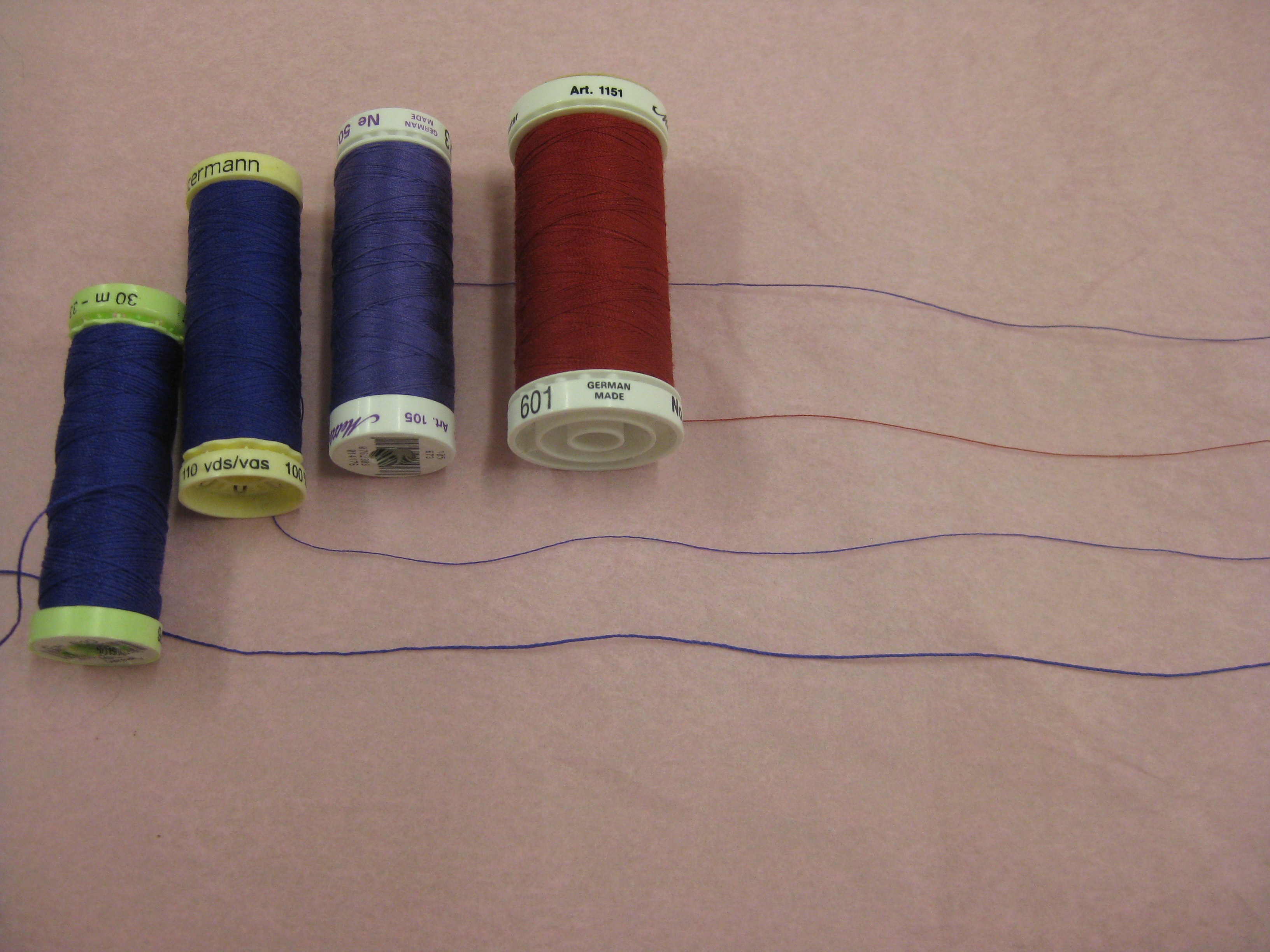 Selecting the most suitable thread for a project is not just about the best colour match. Threads vary in composition and thickness. Using a thread that is not compatible with the fabric (too weak or too thick) can spoil the finished result as the thread will not do its job of holding the garment together while remaining an invisible part of the construction.