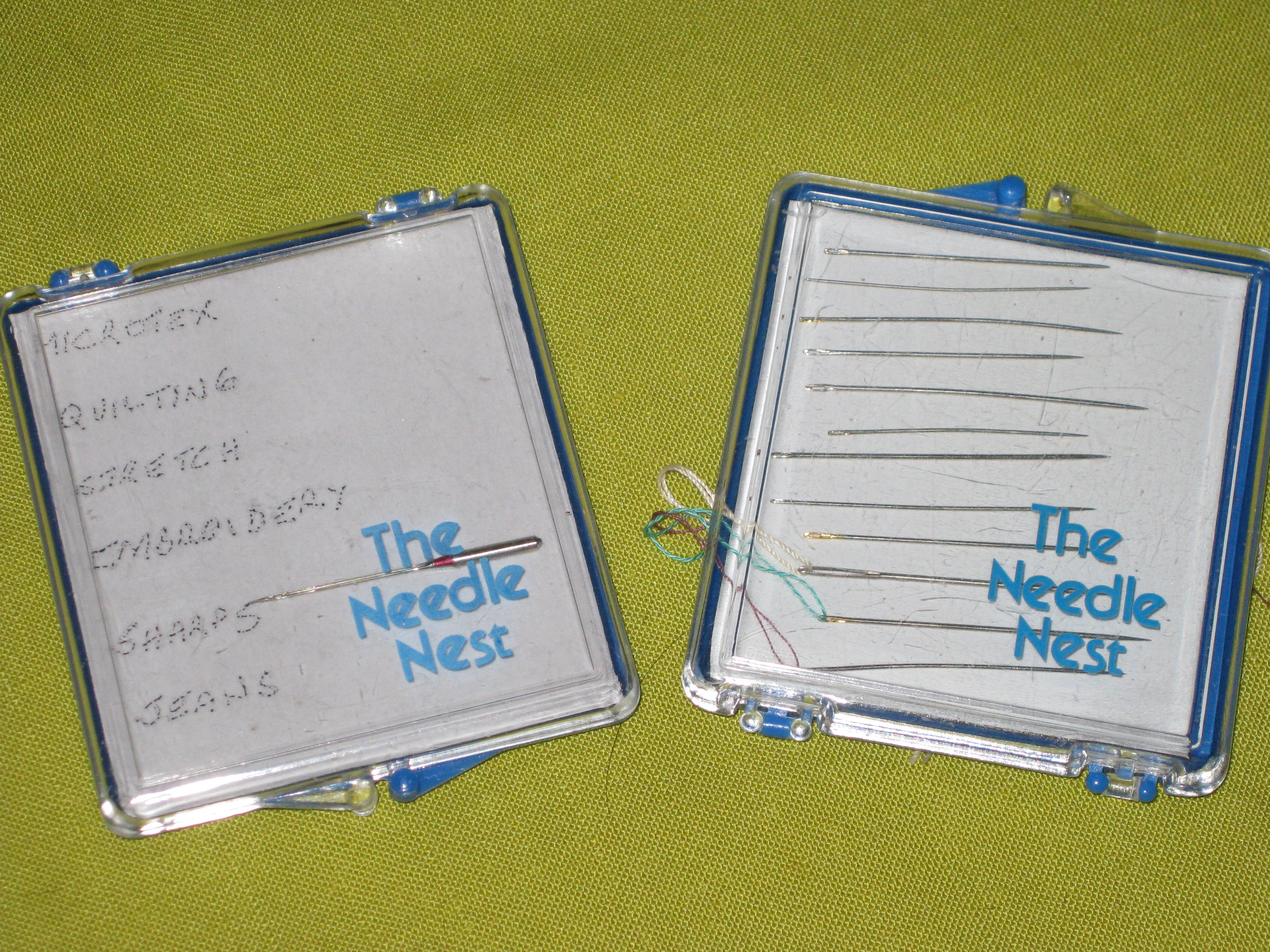 - For storage of needles which have been used but are still usable, mark needle types with a permanent fabric marker on an inexpensive pin cushion.