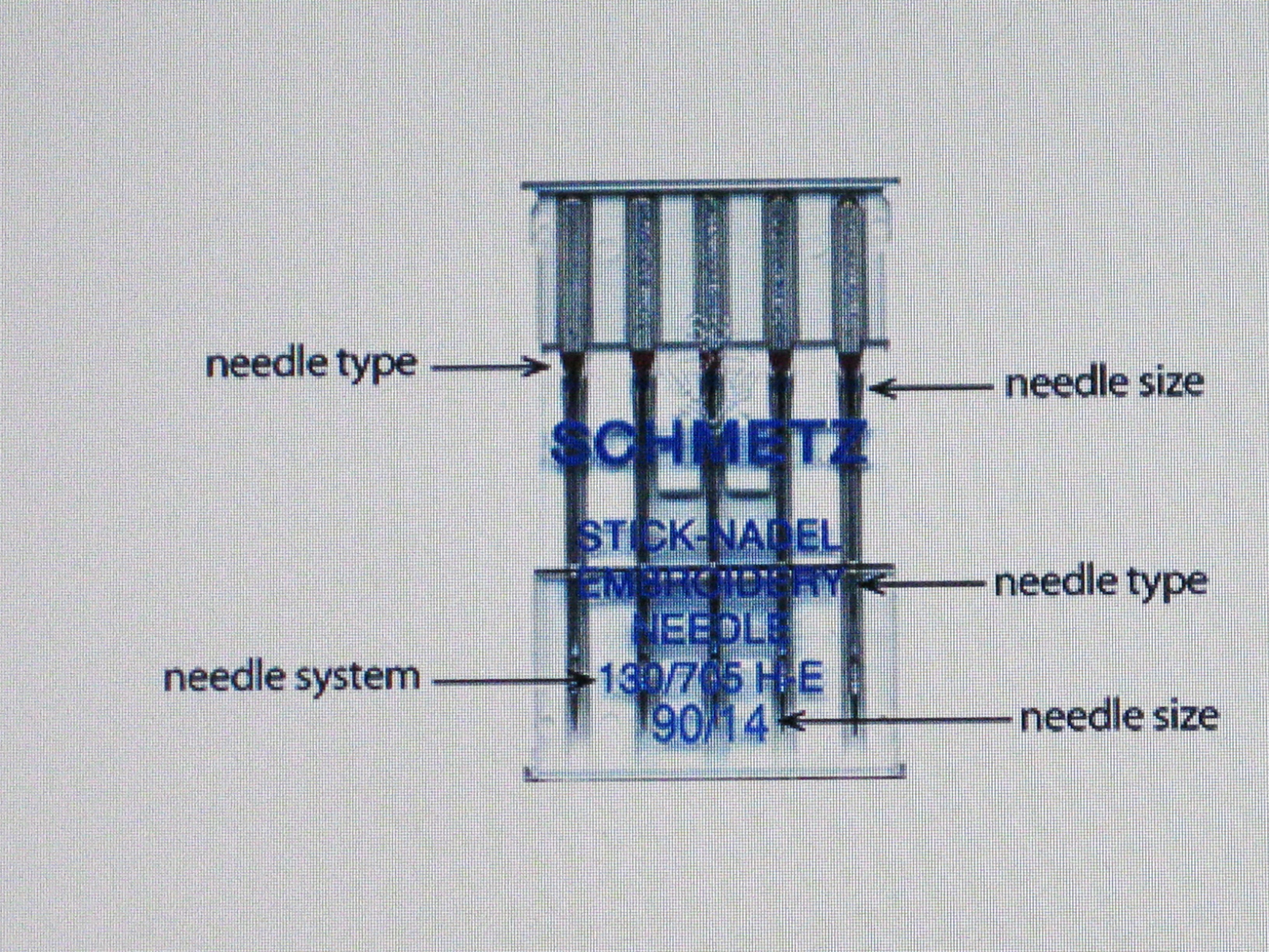 Machine needles are identified by type on the package by both their type name and a type number which is common to all brands. The needle size is also marked on the package.