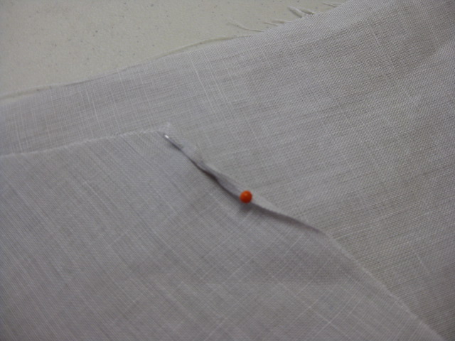 - place the point of a small bamboo skewer where the fold of the fabric will sit and stitch slowly allowing the foot to curl the fabric under to form the rolled hem.