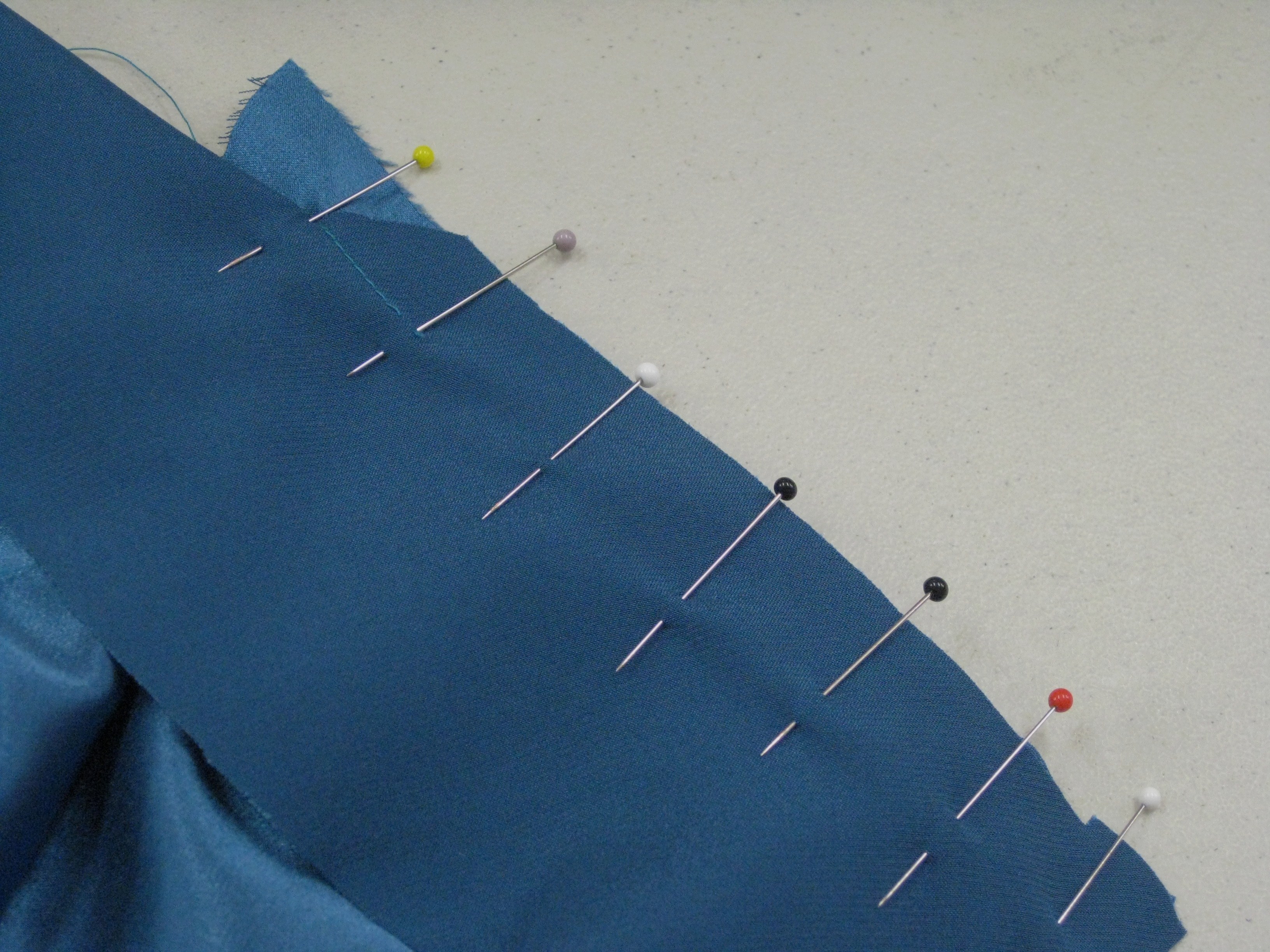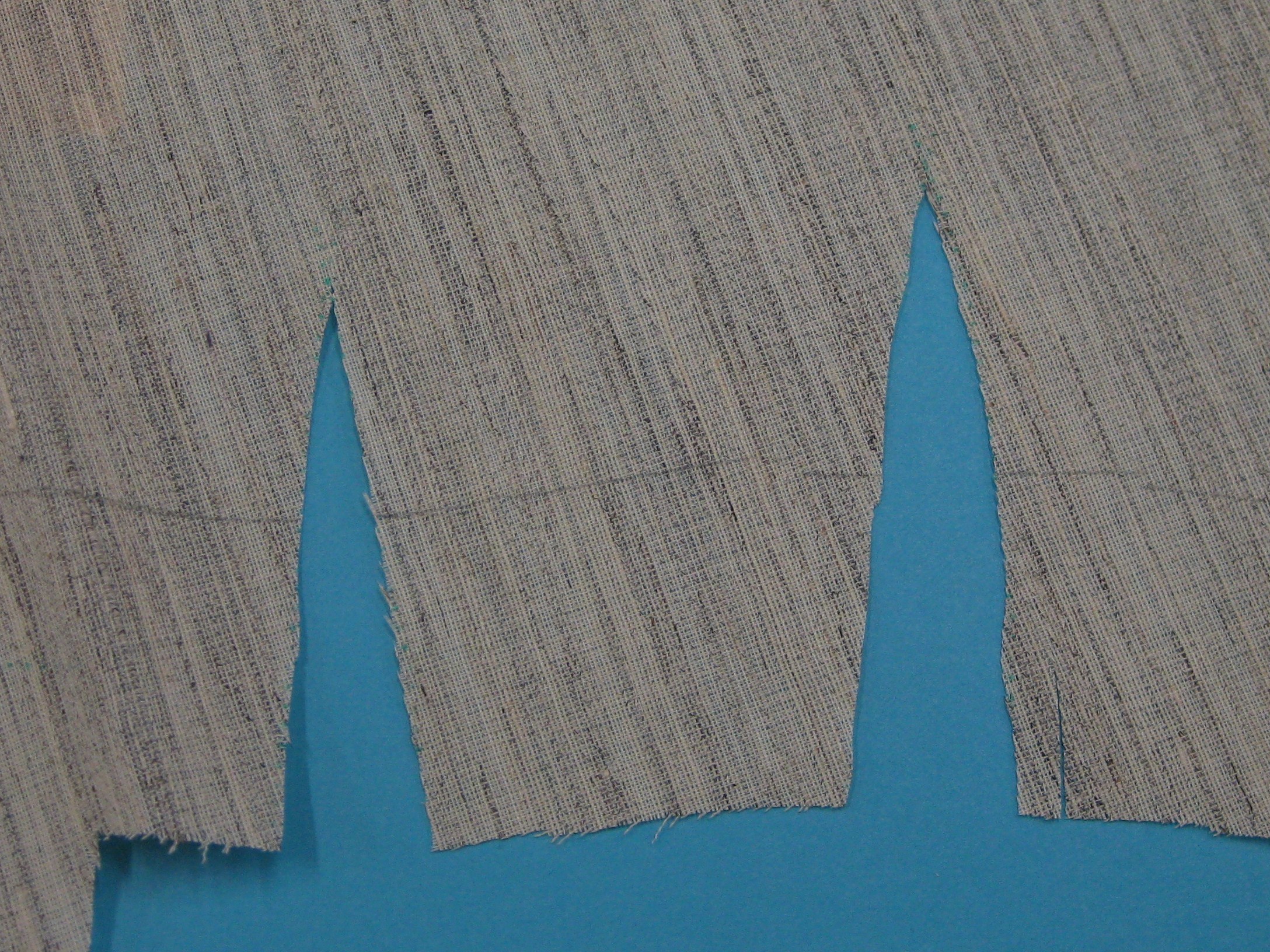 I have sewn and slashed the darts. They have also been pressed them open which reduces the bulk, particularly at the hemline. Before the hem is completed they will be topstitched in place.