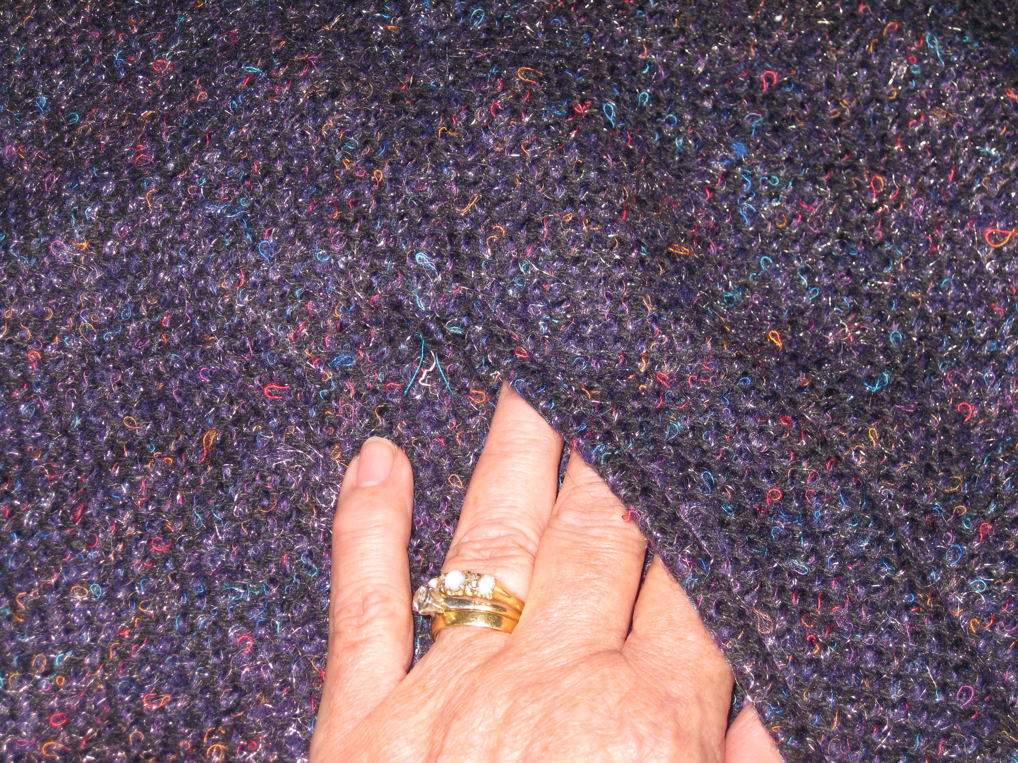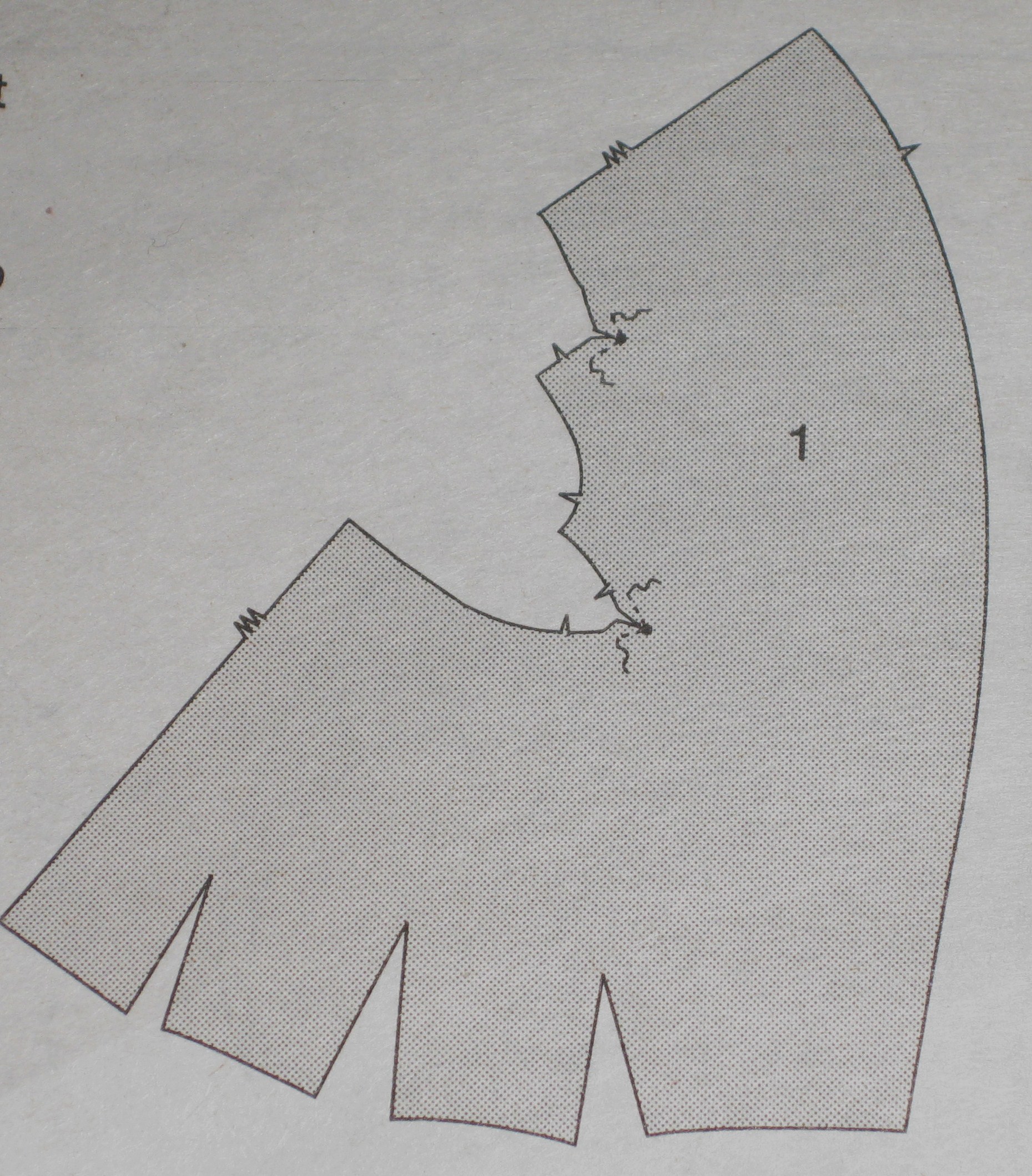 This design has one very large piece which flows from the centre front, including the shawl collar, on through the skirt section right across to the centre back with no side seams.