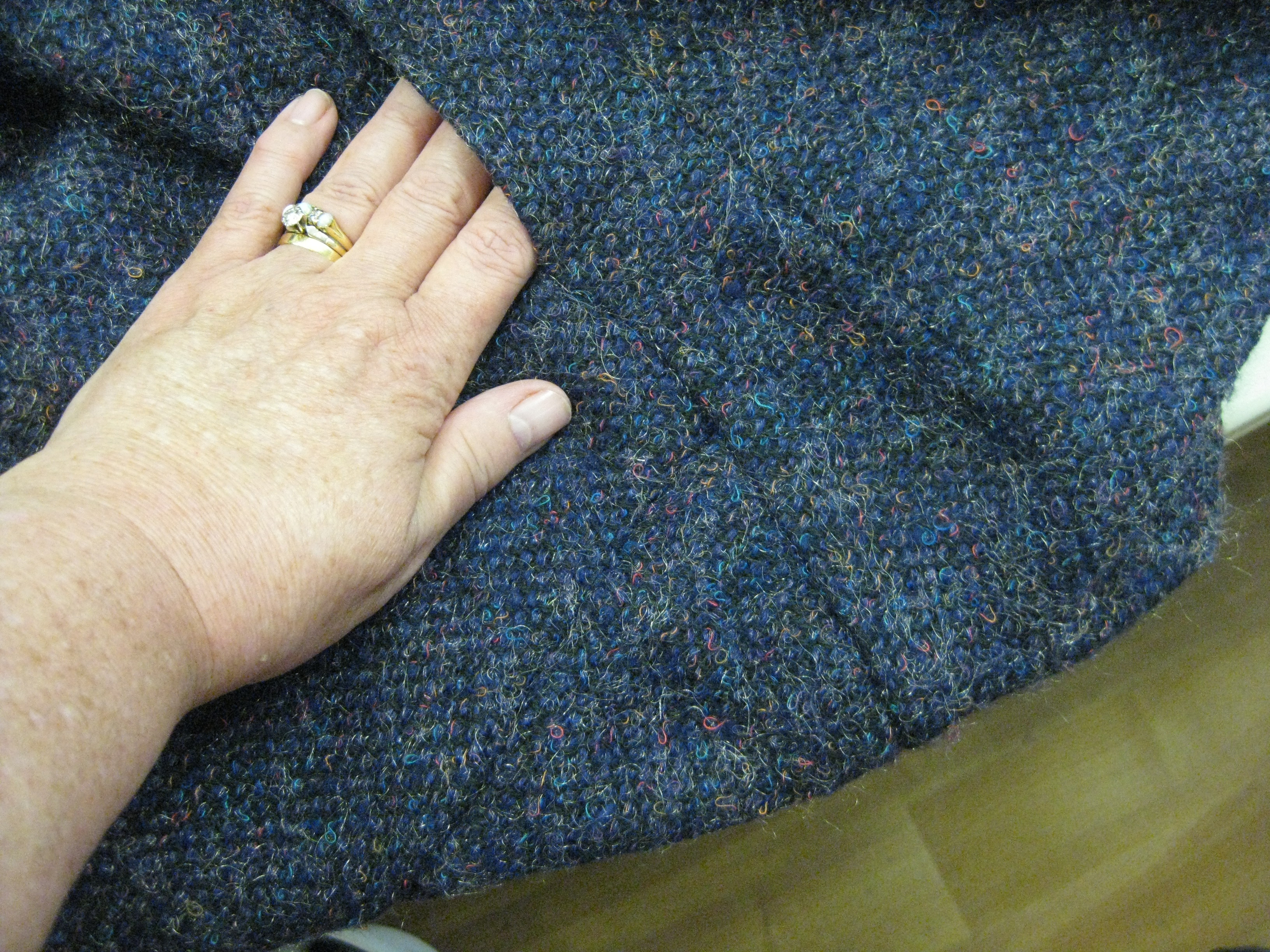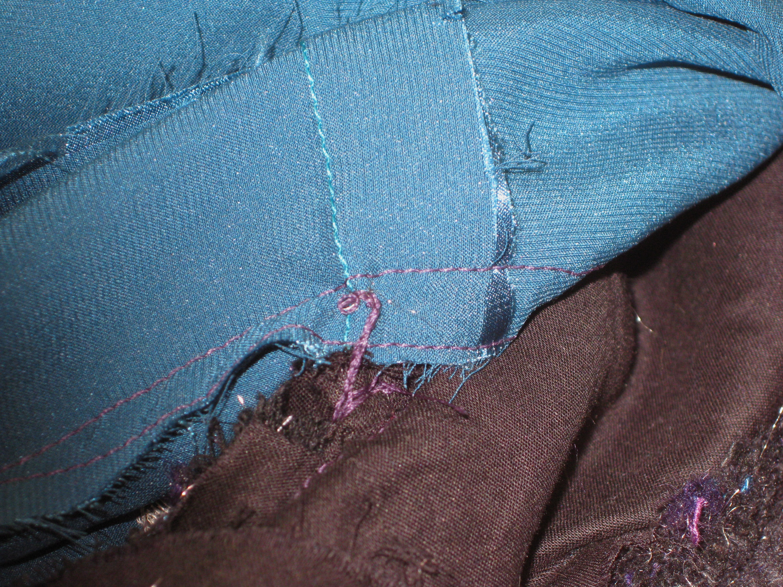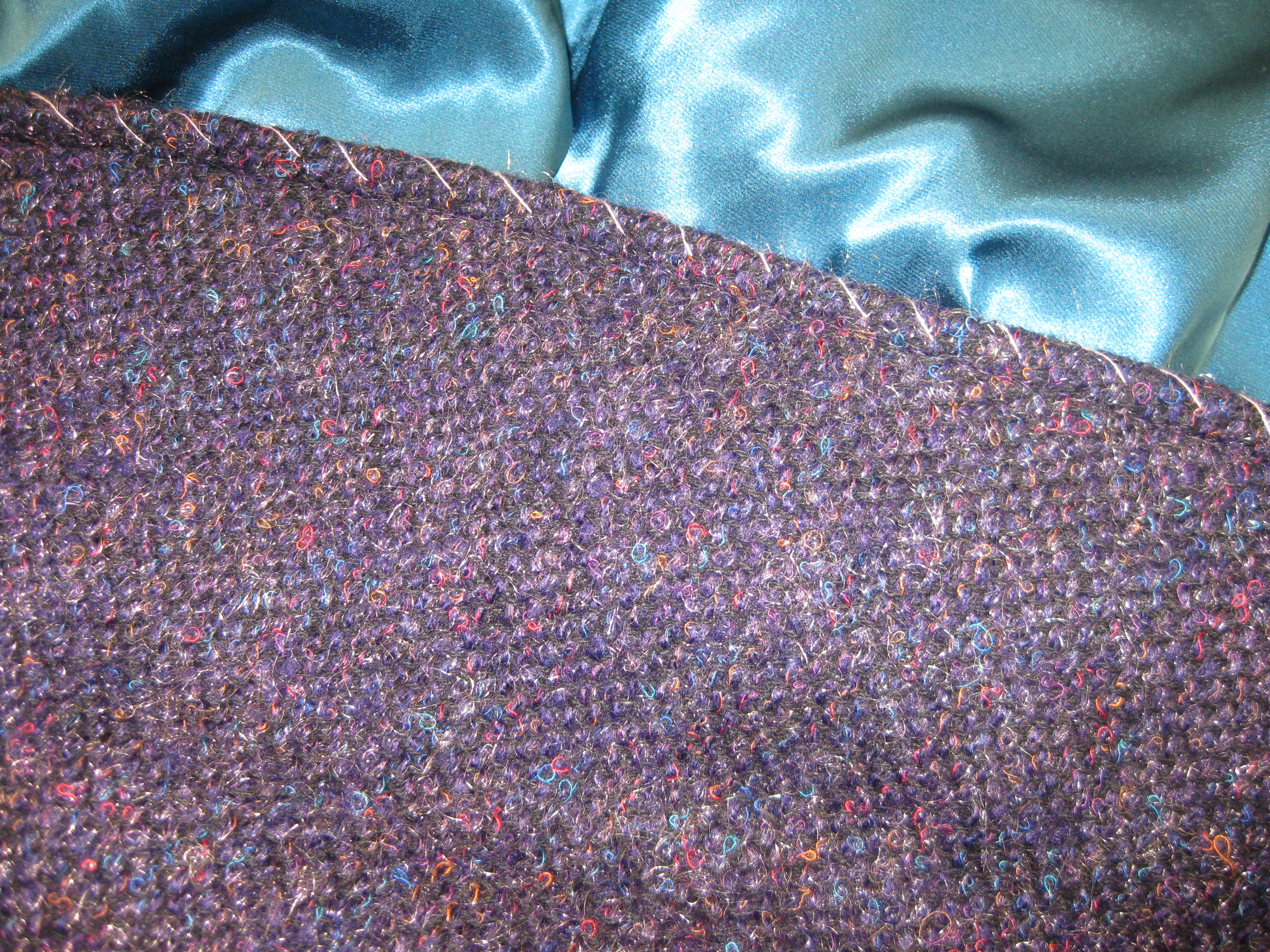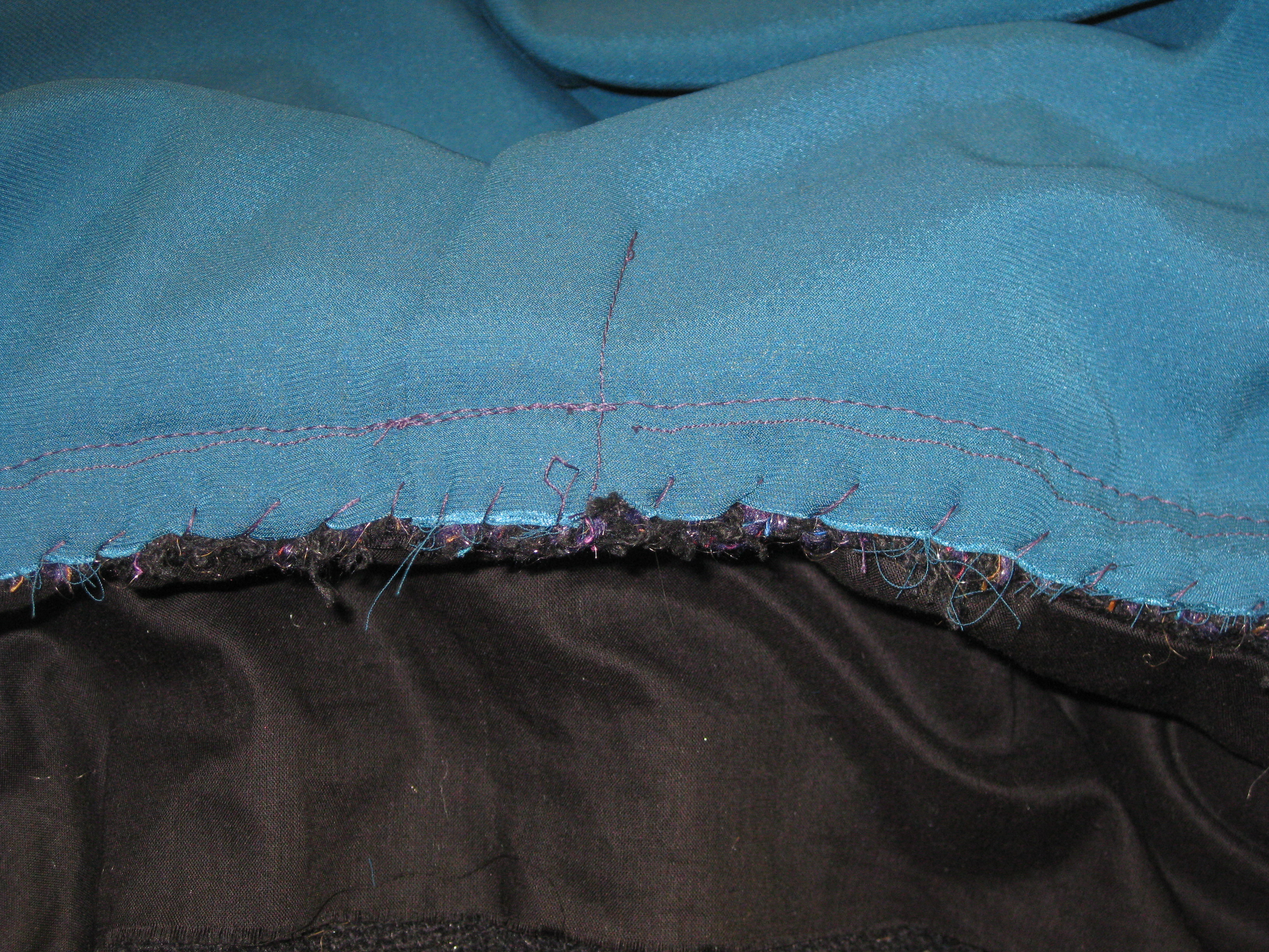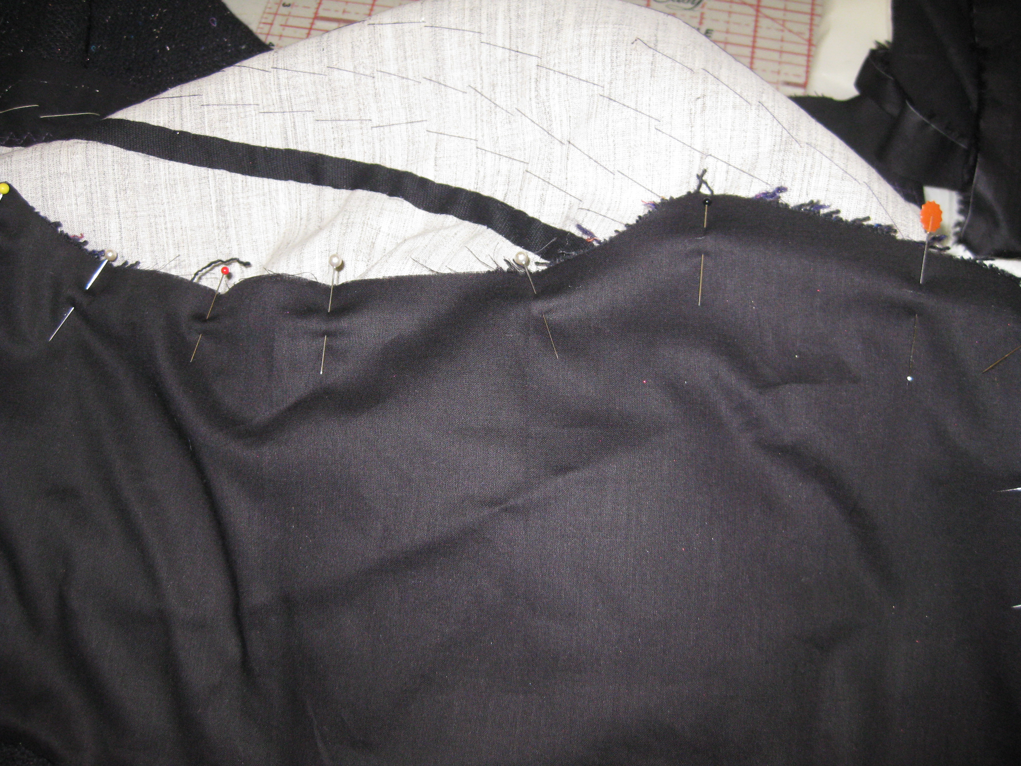I have chosen to slipstitch the bottom of the lining to the top of the hem allowance rather than using a machine bagging method which would be extremely difficult to achieve because of the weight and bulk of the garment.