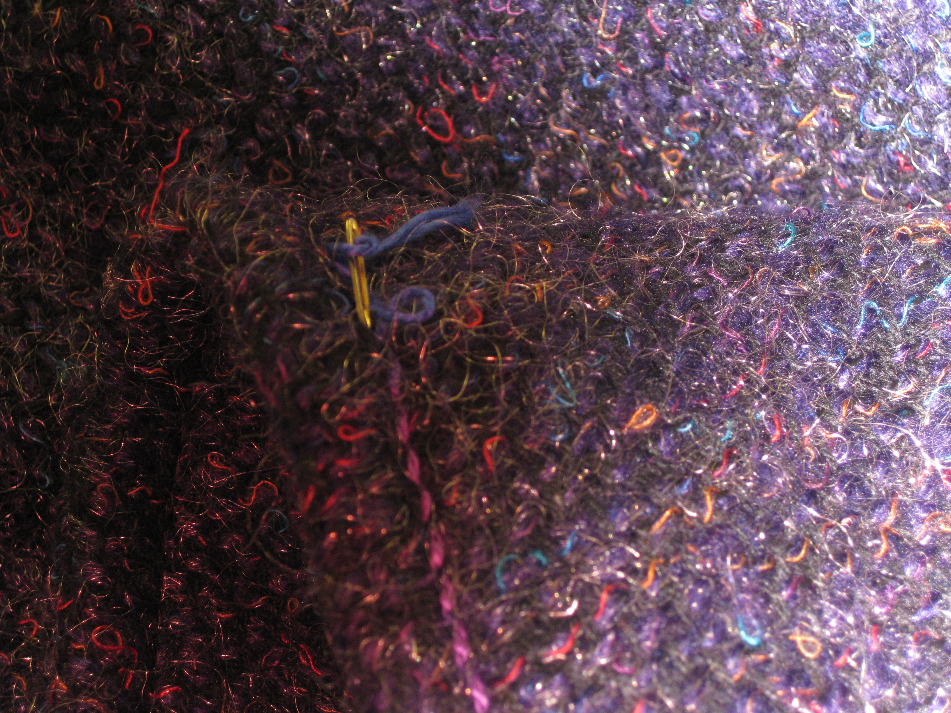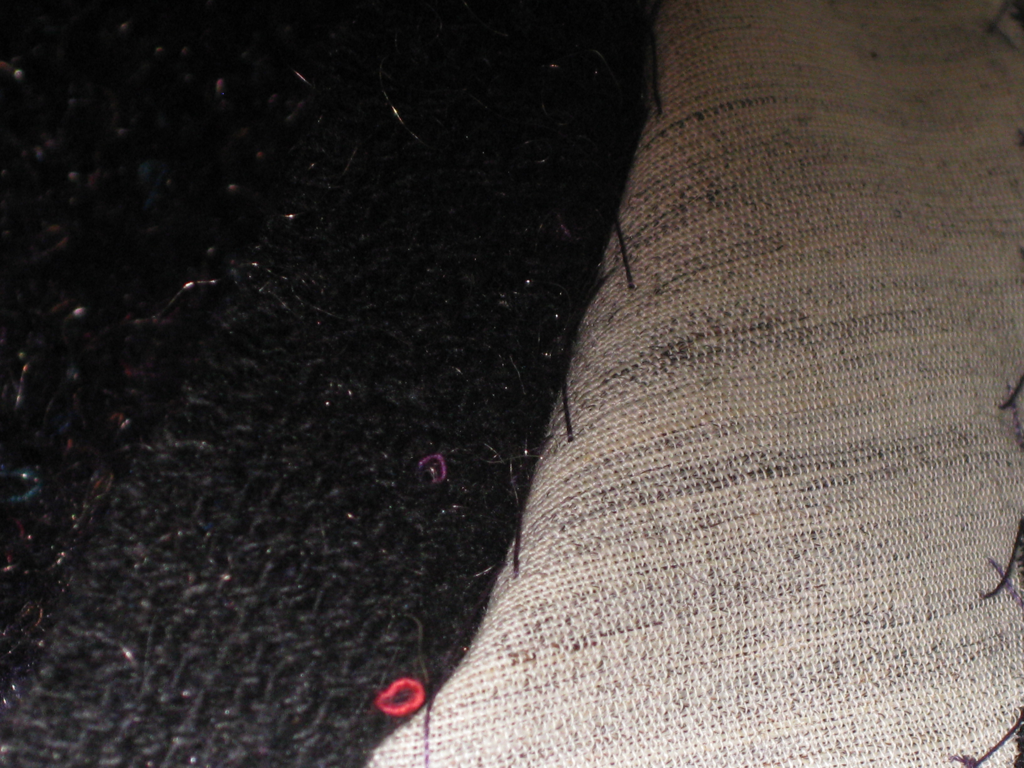 When the thread needed to be finished, it has been threaded back in between the layers. A snag tool was very helpful with this as well as in repairing other pulled threads in this type of fabric.
