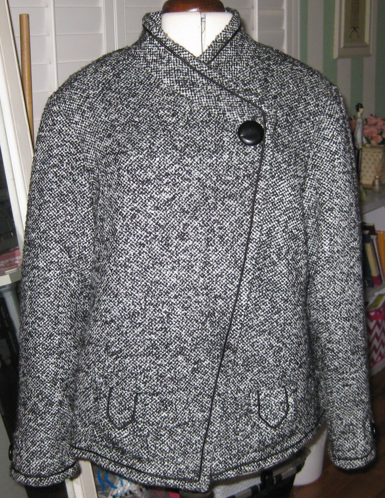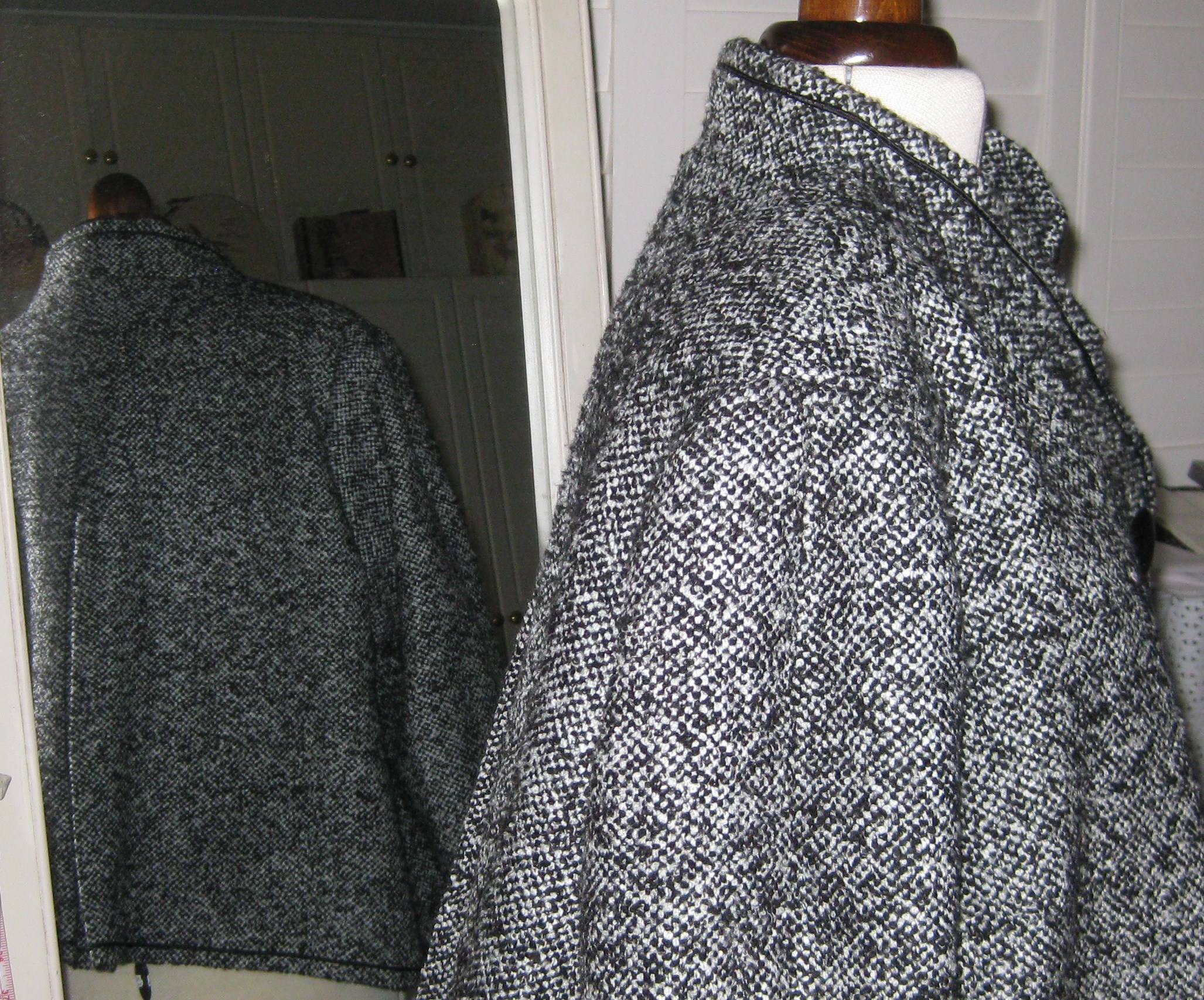 A couple of years ago I purchased some lovely  soft  woollen  fabric with a mottled grey, black and white weave to make  a winter jacket.   Having  ”aged” the fabric for a couple of years while I waited for its project idea to arrive(!), I finally decided the time had come.