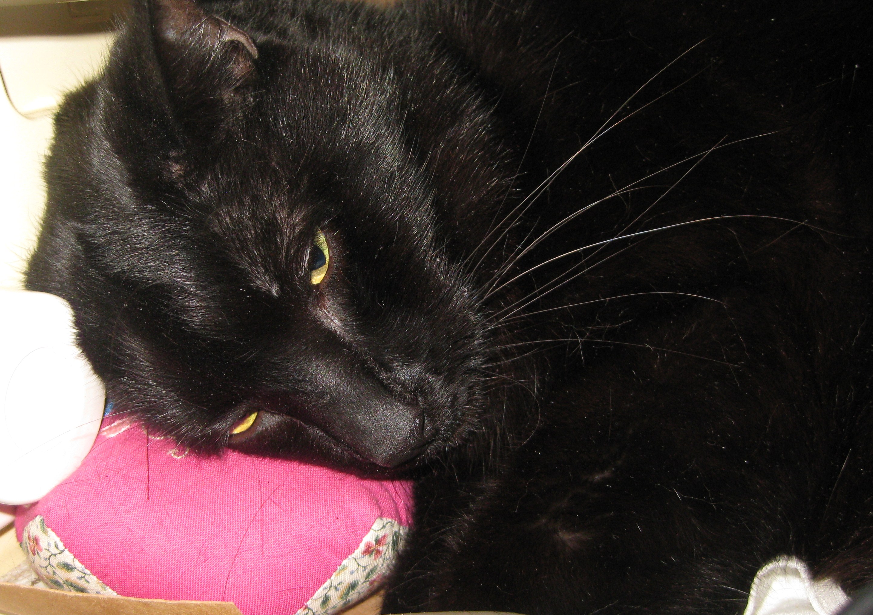 Beau has been helping me with the blog – he has his own cushion (formerly a pin cushion)