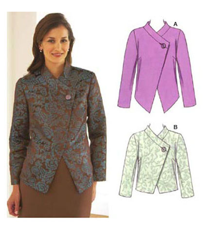 I wanted to incorporate the collar and asymmetrical front from KwikSew 3531 and the back and sleeve details from a Marfy jacket which is offered as a free pattern with their 2009 issue.  This pattern is not sold separately and I am not sure whether the 2009 issue is still available.  However, the details I used are fairly easy to replicate using a plain bodice jacket back and one piece sleeve.