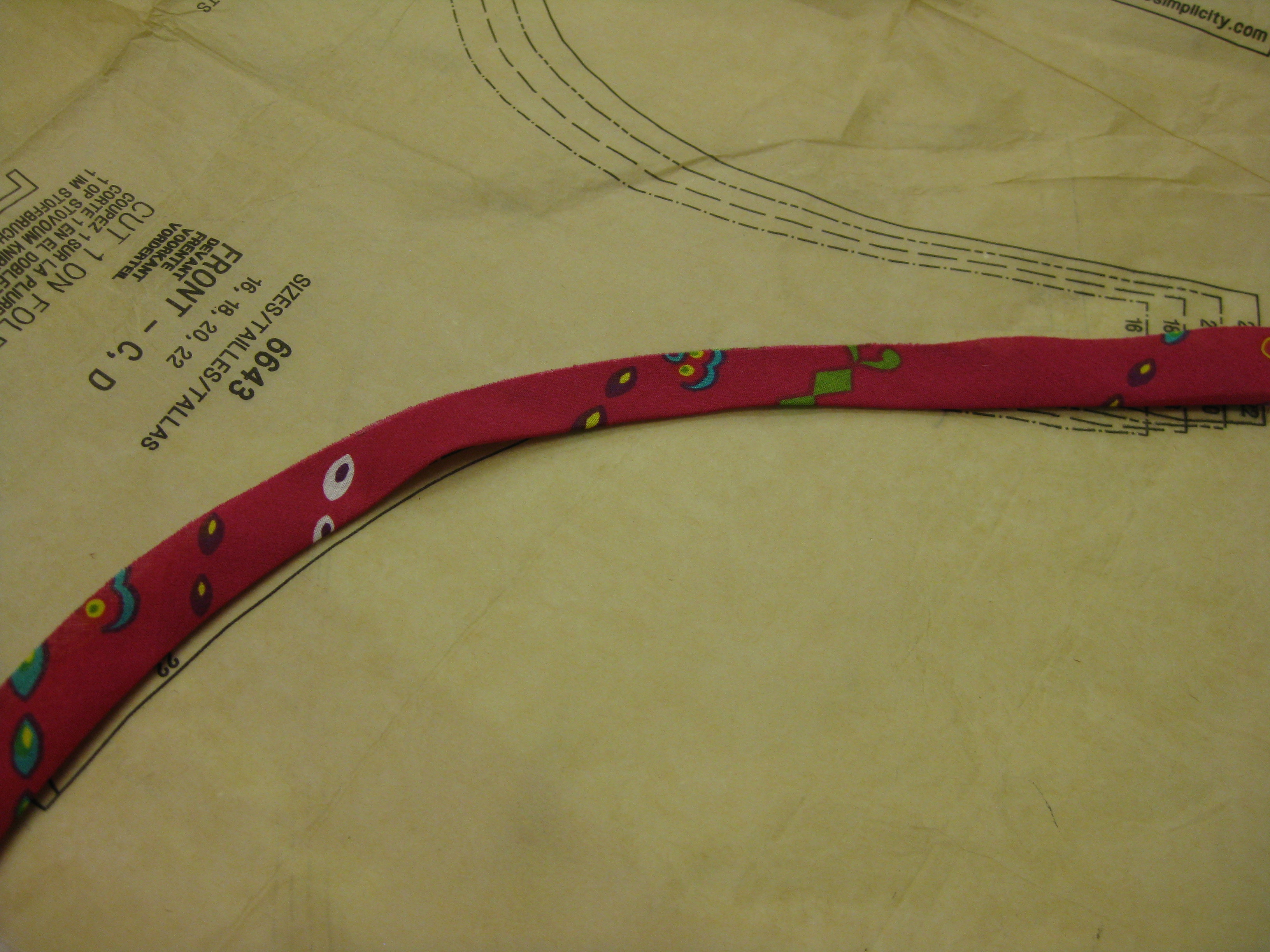 Using an iron and steam, press the bias strips into the shape of the curve of the pattern piece.