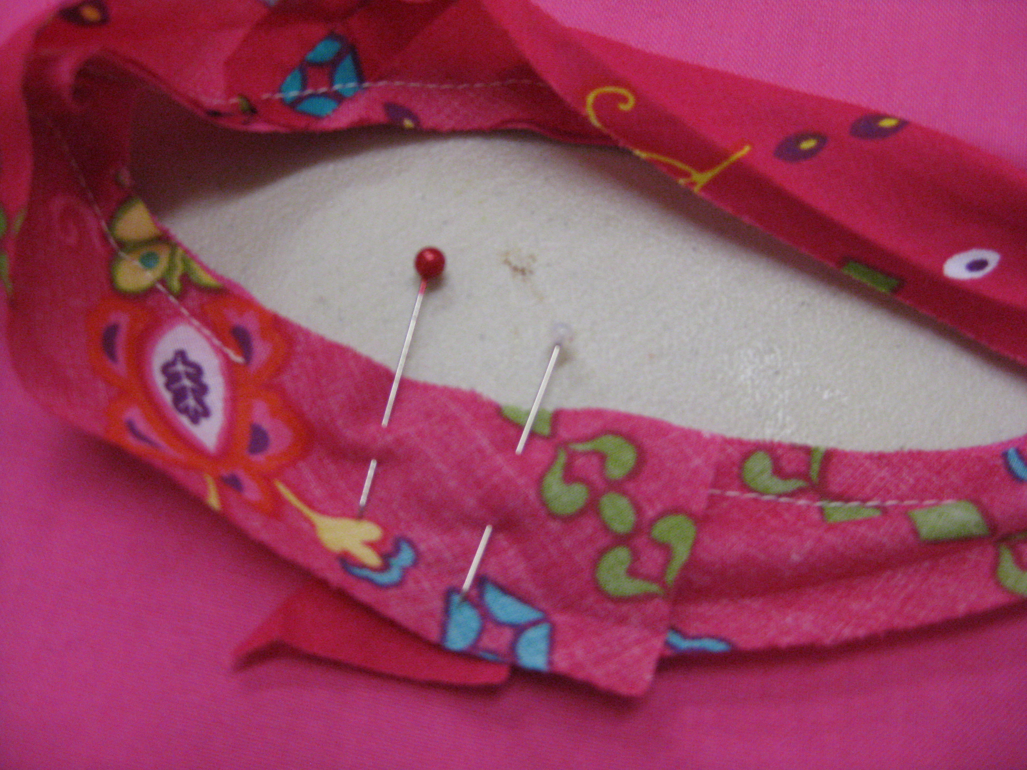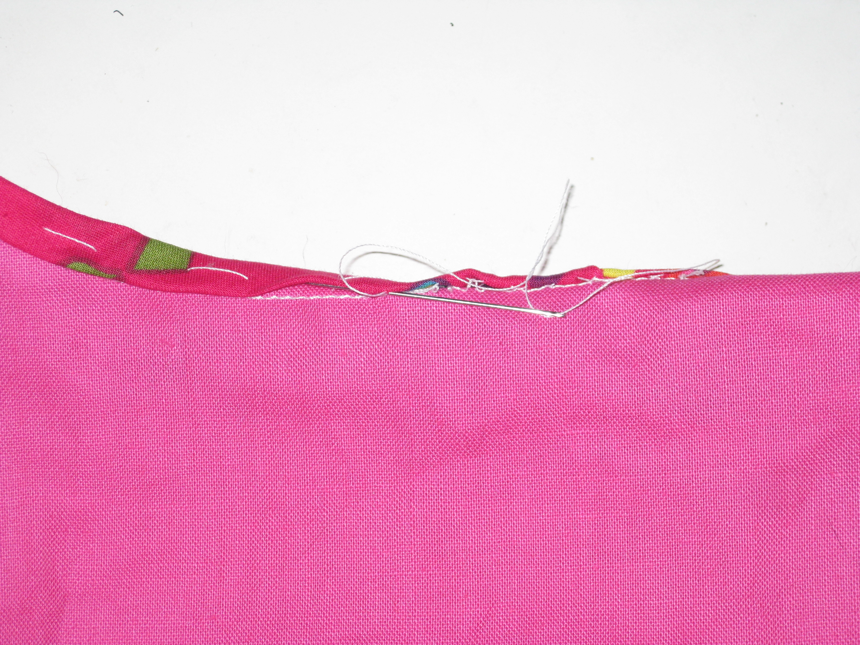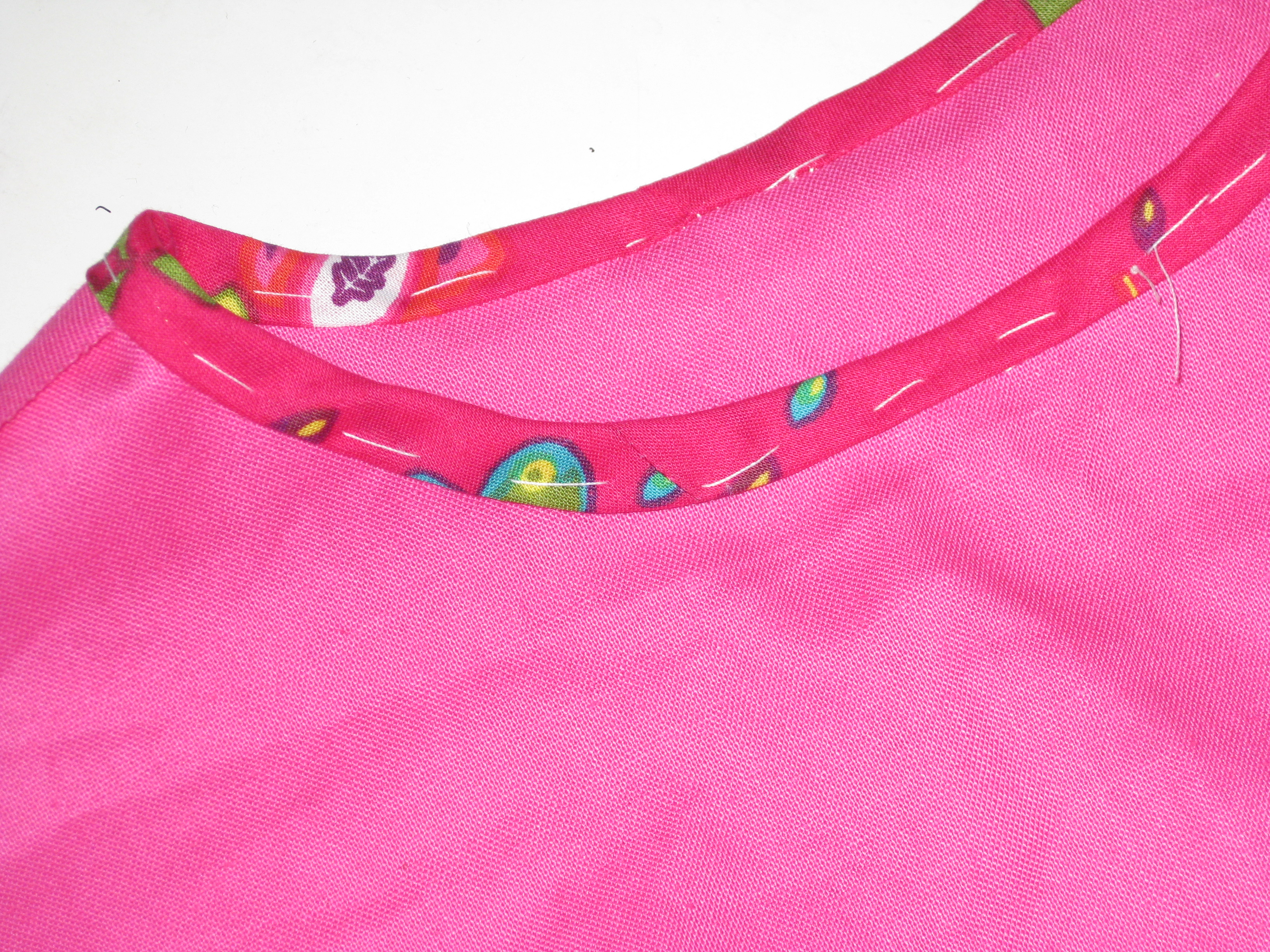 If you are using satin or other tricky fabrics or applying a binding to a neckline edge with pleats or gathers, tacking the binding in place before machine stitching will really help in achieving accuracy.
