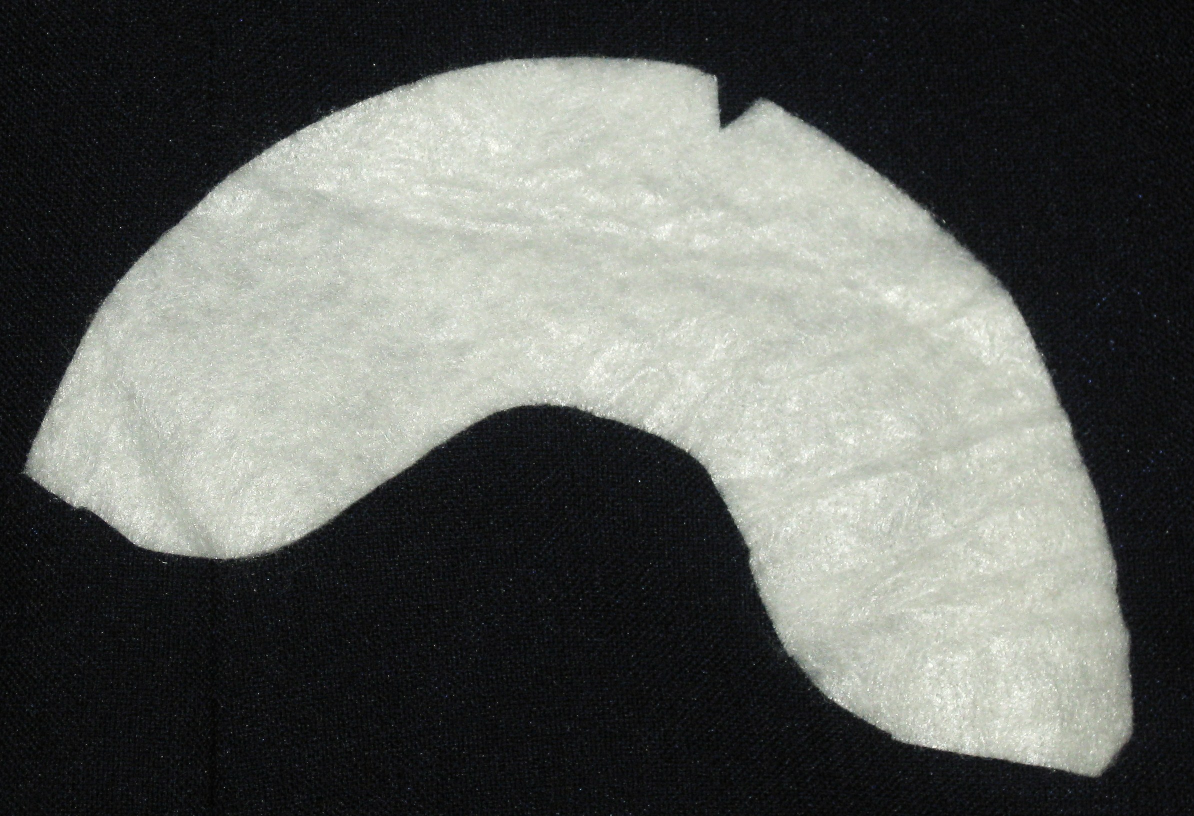 • Sleeve heads can be made either from a strip of wadding cut on the bias (2 inches by 7 inches) or to the shape of the garment sleeve – they are usually made from cotton or wool quilter’s wadding and are stitched into the sleeve by machine after the sleeve is inserted into the garment