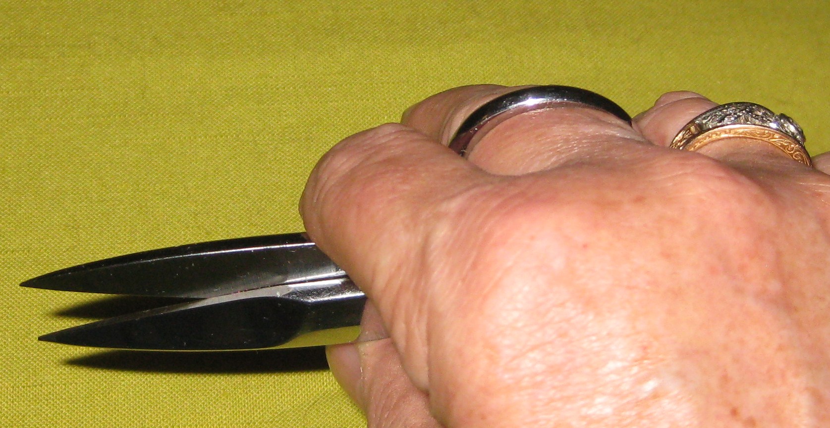 - Gingher thead snips – I resisted thread snips for a long time until I found these. By placing the opening over my middle finger I achieve excellent control, especially when trying to clip elusive thread tails