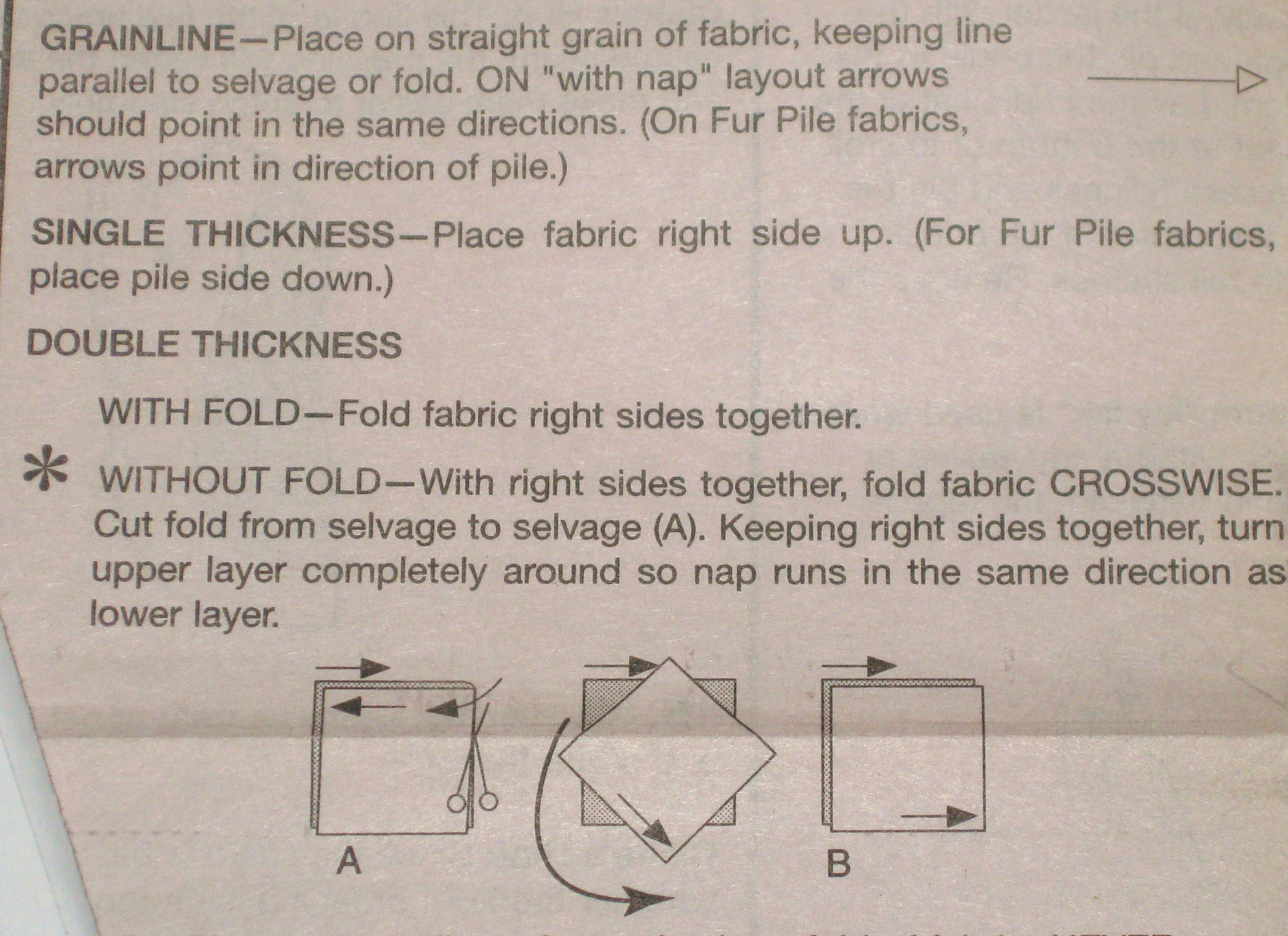Guidesheet description of fabric layout – note No Fold option – cut and turn fabric before placing right sides together.