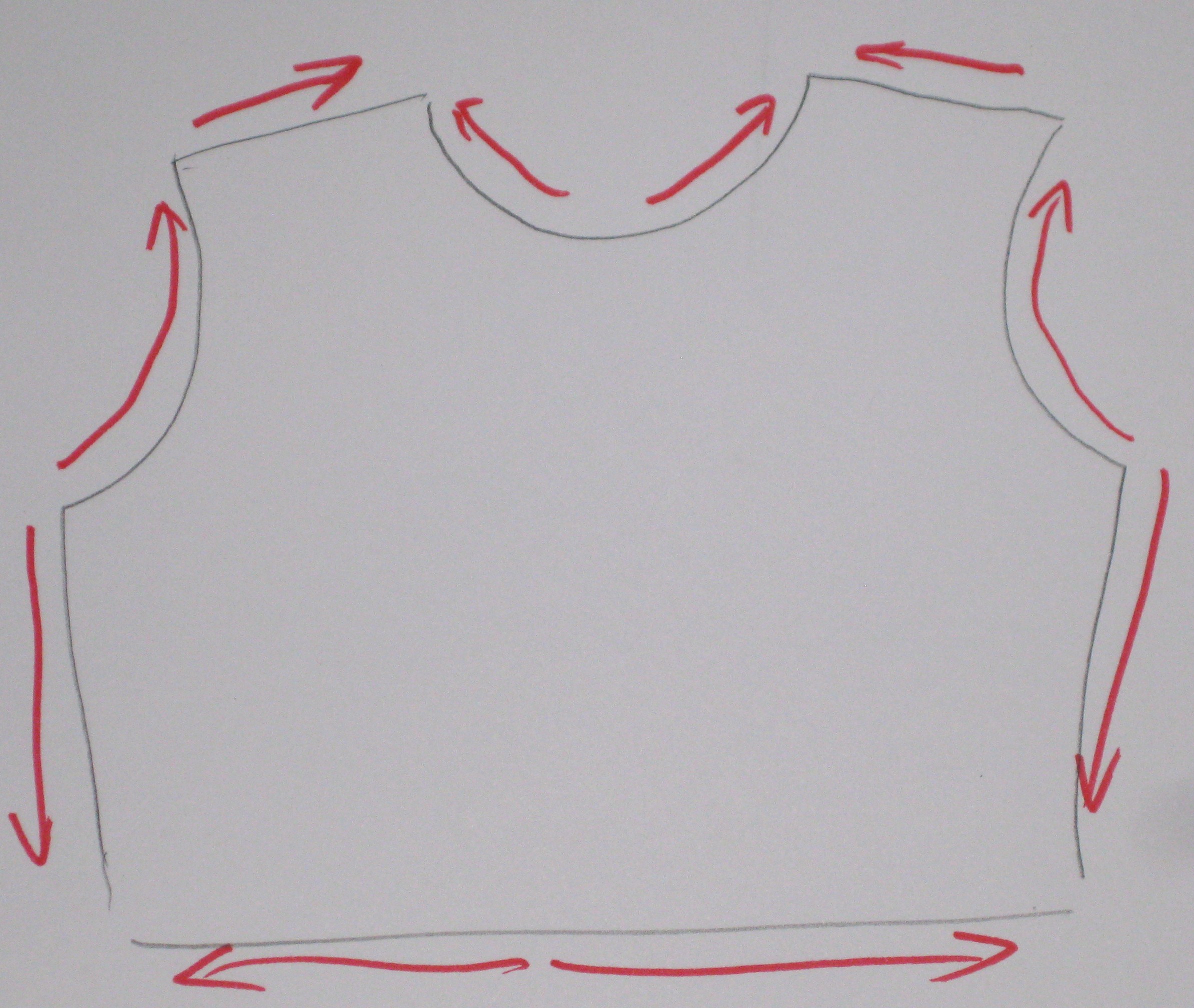 - When stitching vertical seams, follow the pull of gravity, stitching from neckline to hemline. For necklines and horizontal seams, stitch from the centre out.